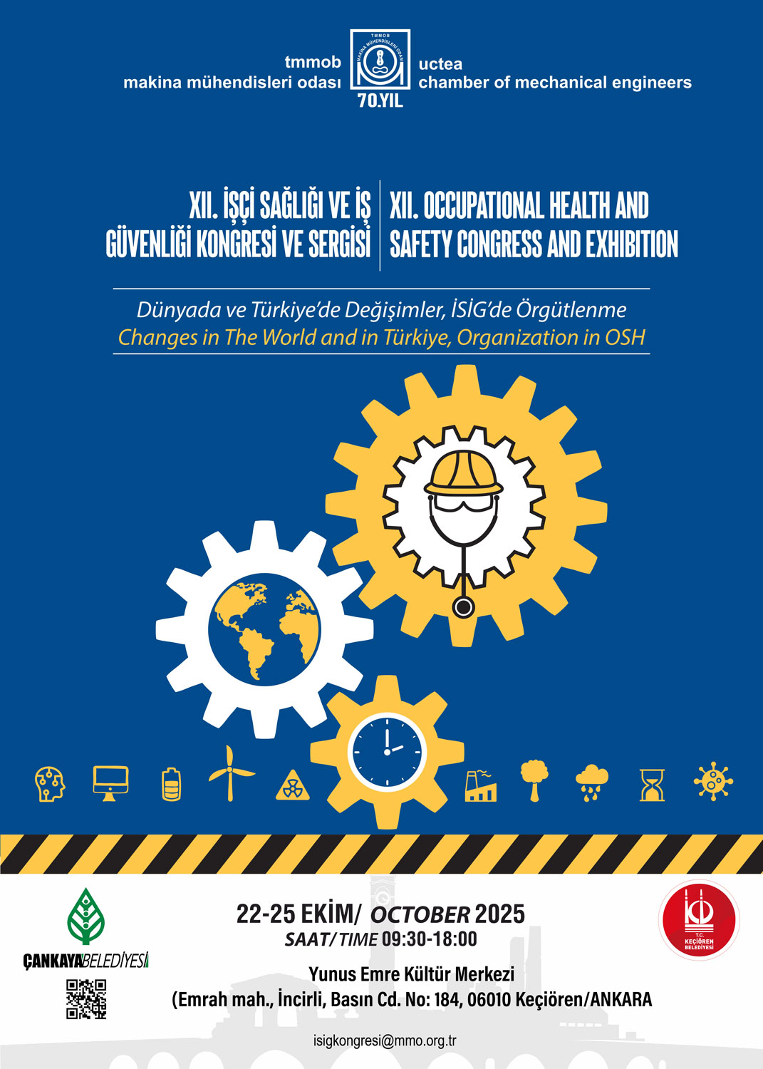 22-25 Ekim 2025 tarihlerinde Ankara’da Makina Mühendisleri Odası tarafından düzenlenecek XII. İşçi Sağlığı ve İş Güvenliği Kongresi ve Sergisi kapsamında, Başkent Üniversitesi İş Sağlığı ve Güvenliği Anabilim Dalı Başkanı Prof. Dr. Gülin Feryal Ural ile Anabilim Dalı yüksek lisans öğrencisi Yasemin Özkan, “İşveren Perspektifinden İşçi Sağlığı ve Güvenliği Kültürünün Benimsenme ve Uygulama Düzeyinin Araştırılması” başlıklı bildirilerini sunacaktır.