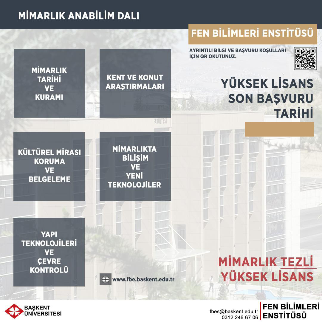 Mimarlık Tezli Yüksek Lisans Programı Başkent Üniversitesi Fen Bilimleri Enstitüsü bünyesinde 2018-2019 Akademik Yılı Güz Döneminde öğrenci alımına başlamıştır.